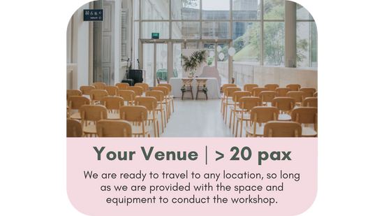 Hosting something larger? We’re happy to come to you. Whether it’s a corporate space or event hall, just provide the venue and we’ll bring the full workshop setup to create something memorable.