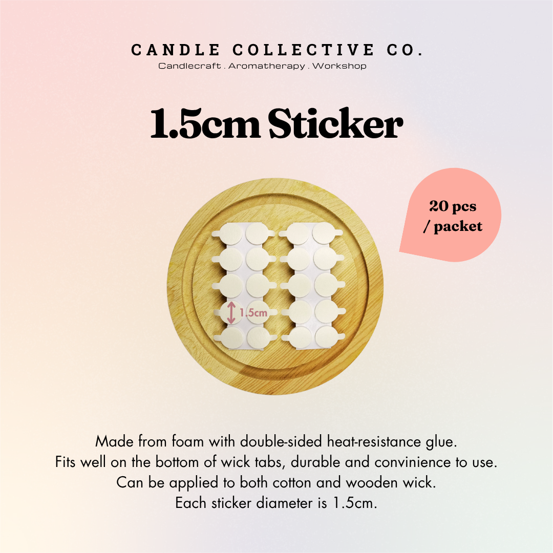 These 1.5cm Stickers are crafted from foam with double-sided heat-resistant glue. They fit well on wick tabs, offering a reliable hold for both cotton and wooden wicks.
