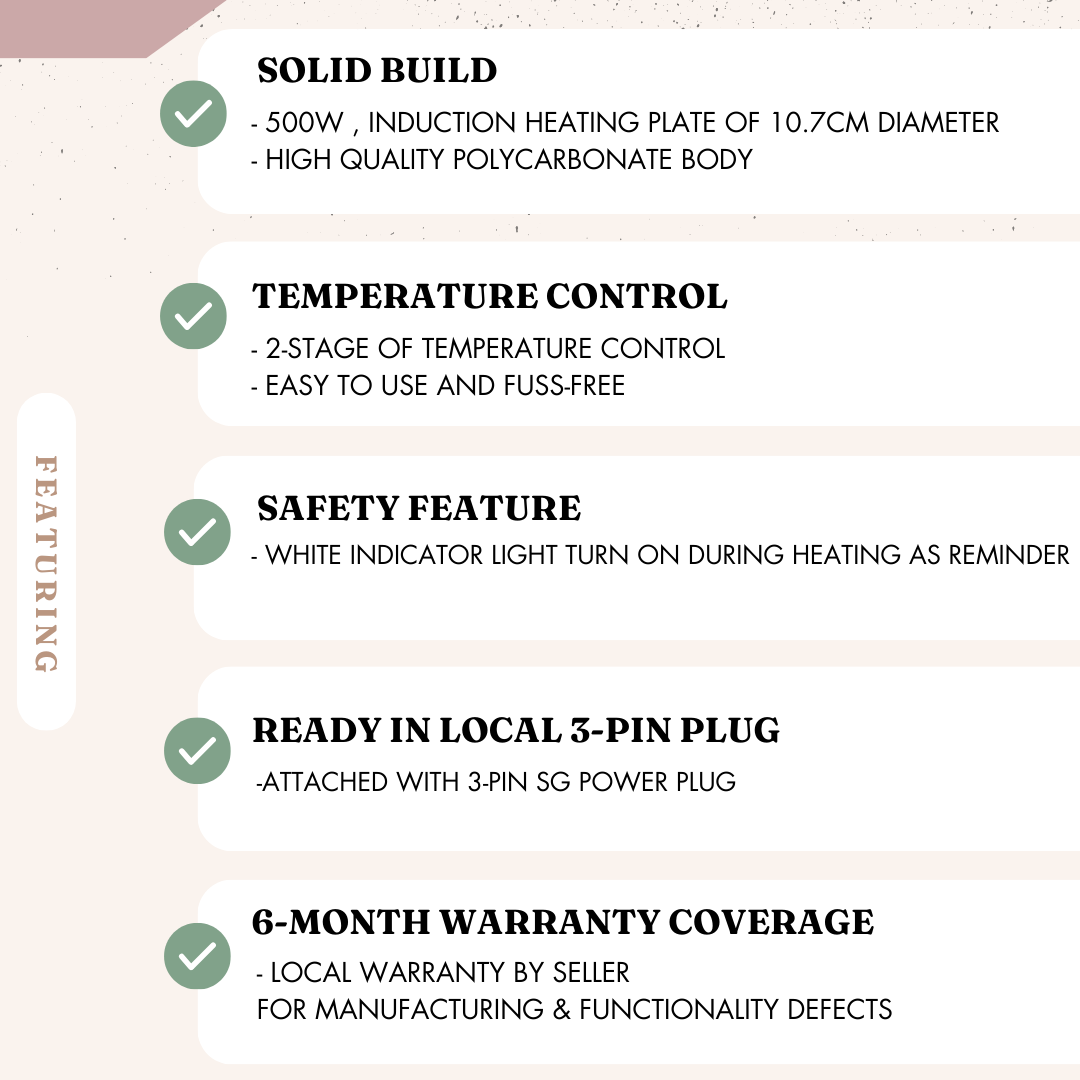 -2 levels of temperature control (medium & high). *water can be boiled at high setting