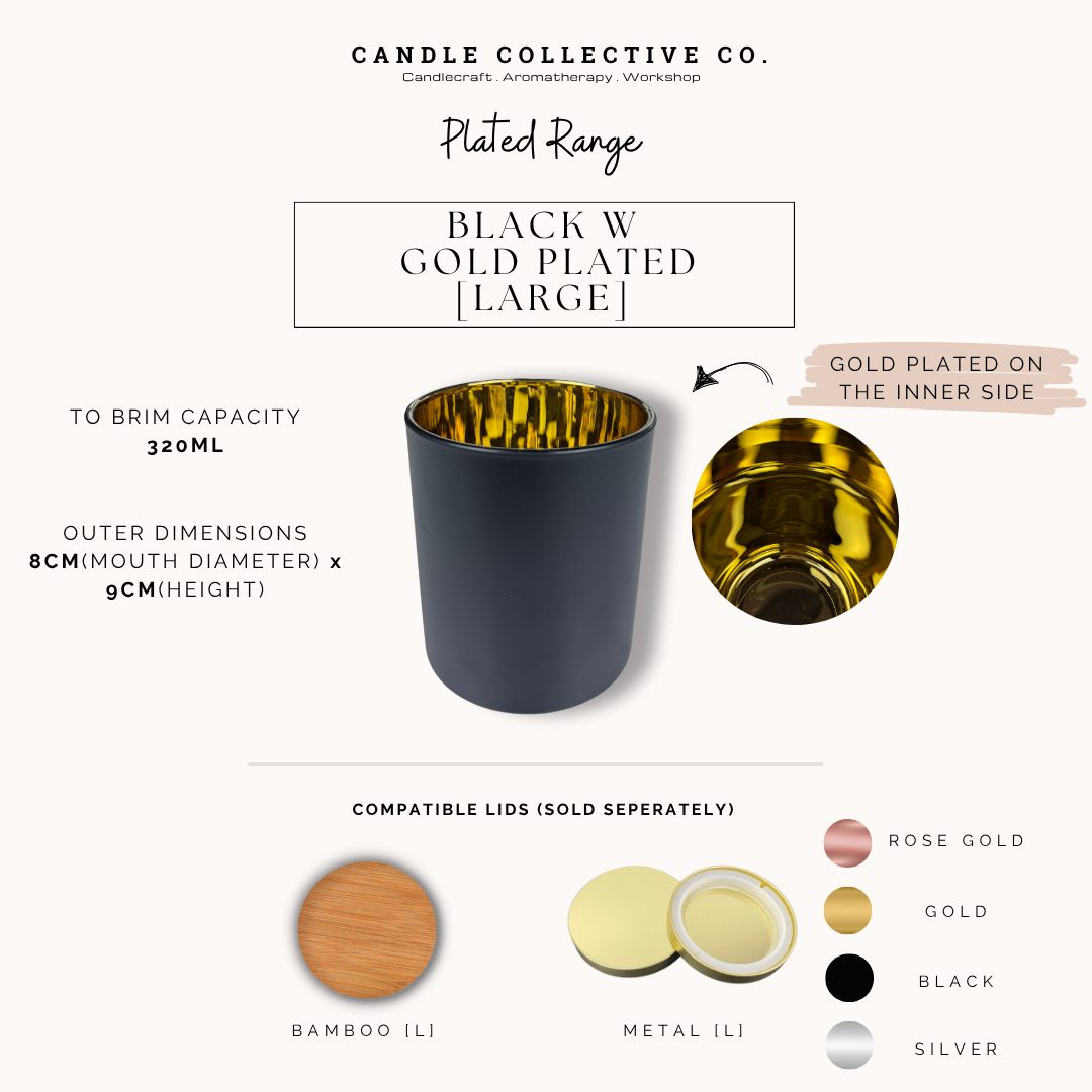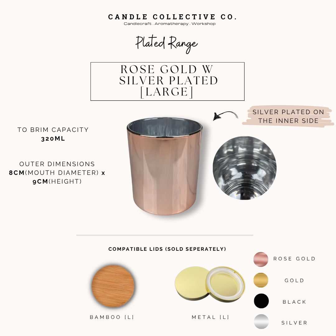 Our Plated Range features vessels plated with reflective metallic inner surface, adding a sleek reflective touch to your candle. A bold yet versatile choice for premium candle pours.